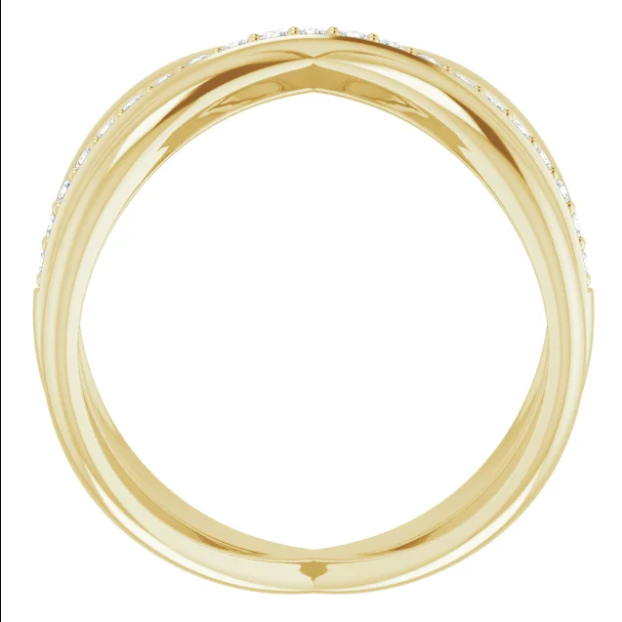 Introducing the Ivy Diamond Ring, an elegant criss-cross design that seamlessly blends contemporary style with timeless sophistication. This exquisite piece showcases 0.16 carats of round brilliant-cut diamonds, meticulously selected for their exceptional sparkle and light performance. Each diamond meets rigorous standards with G-H color grading and I-1 clarity, ensuring a beautiful, eye-clean appearance.
