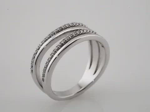 The Ivy Diamond Criss Cross Ring showcases timeless elegance with 0.25 ctw of round brilliant cut diamonds arranged in a captivating sweeping design that gracefully crosses the band. Each diamond is carefully selected for quality, featuring G-H color and I-1 clarity grades that deliver brilliant sparkle and visual appeal.